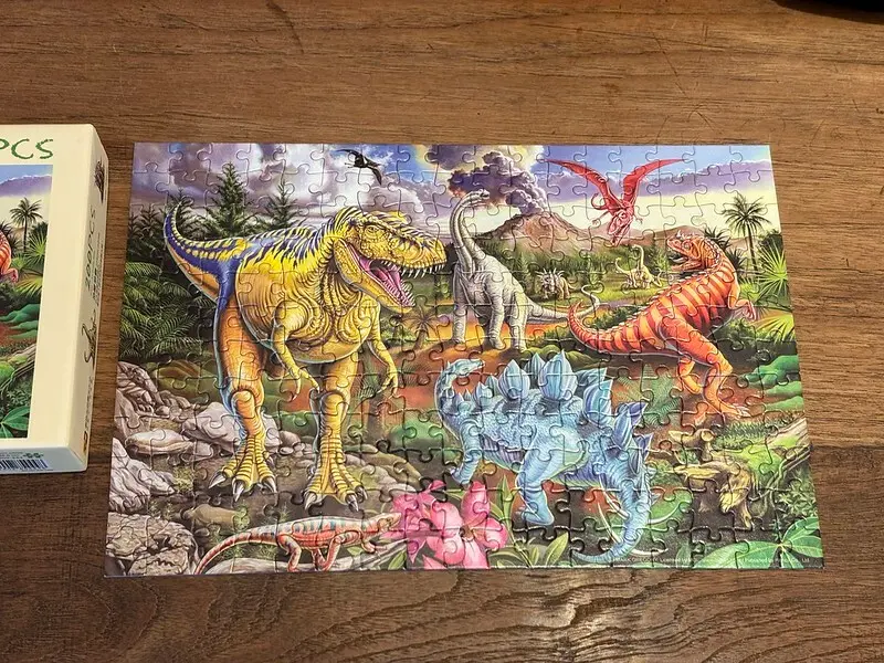 我們選200片的恐龍爭霸,巨大兇猛的恐龍們,在色彩鮮豔的叢林世界,色塊好區分,蠻適合新手。