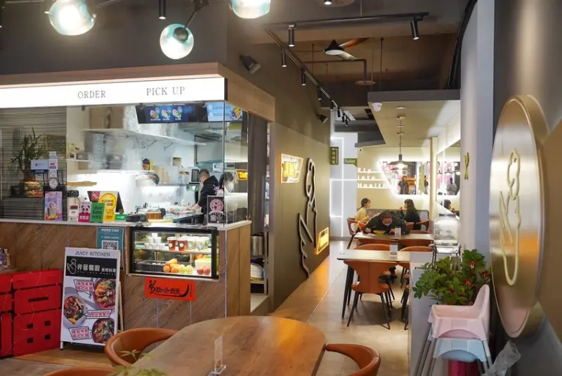 整間店裝潢以溫暖的大地色系為主,搭配木質元素及柔和燈光,營造出舒適又有質感的用餐氛圍,不說還以為來到一間咖啡廳呢!餐具、調味料都是自取,用餐完畢也要自行回收,所以內用不收取服務費。