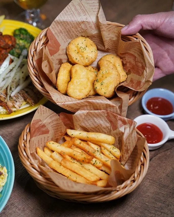 想來點炸物,可以選擇B、C套餐,還會附上飲料,薯條、雞塊不油不膩,非常好吃!
