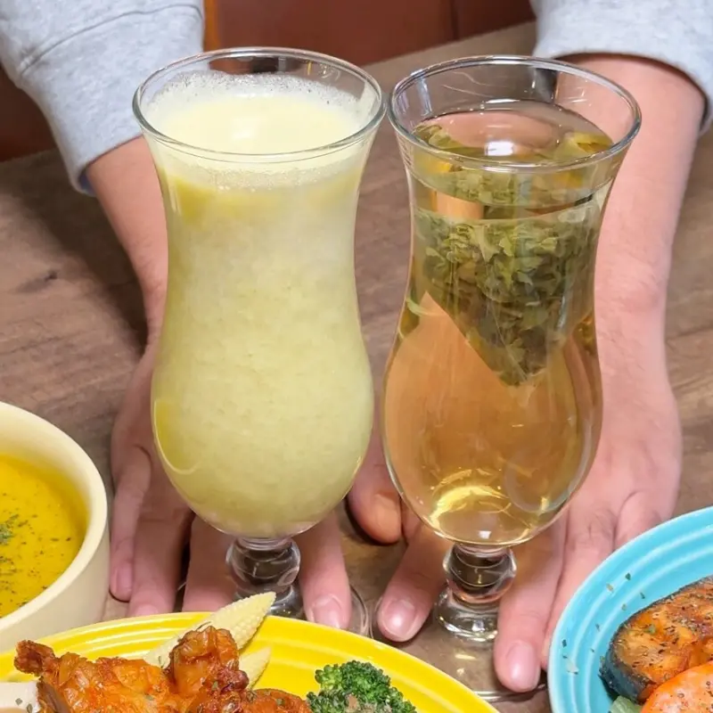 想喝飲料可以來杯不添加一滴水、糖的現打果汁!「冰檸蘋果芭樂原汁」至少加入各兩顆芭樂、蘋果,再加上檸檬的清爽酸味,喝起來既香甜又解膩。