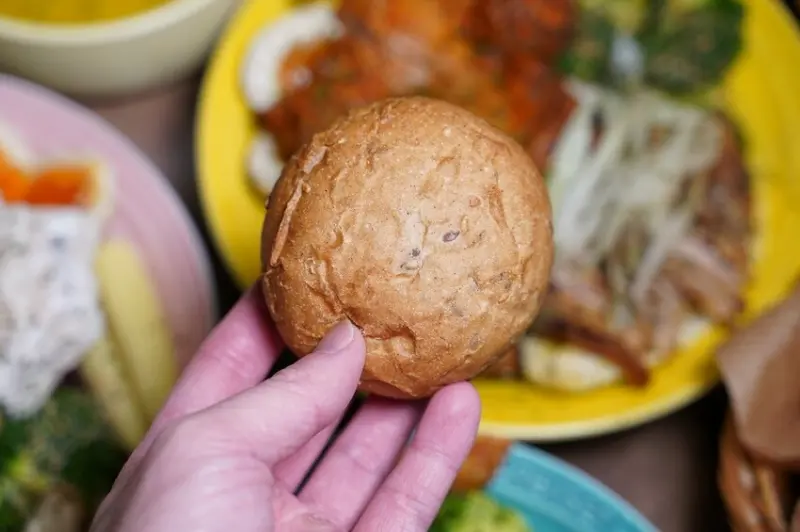 每份餐盒皆附五樣配菜及紫米飯,全都是原型食物,當天吃到的是胡麻花椰菜、溏心蛋、南瓜、娃娃菜、玉米筍,每種蔬菜調味都恰到好處,鹹淡適中不油膩。米飯特別選用池上米混合紫米,吃起來粒粒分明又Q彈,而且越嚼越能感受到米的自然甜味!