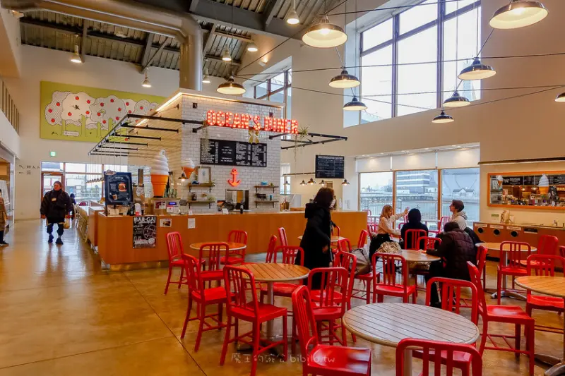 一樓餐廳有兩家分別是義式冰淇淋Gelato natura due和漢堡店OCEAN`S DINER,這裡都有一些蘋果料理點心,還有現烤蘋果派,購物完若還有時間可以坐在這欣賞美麗的陸奧灣。