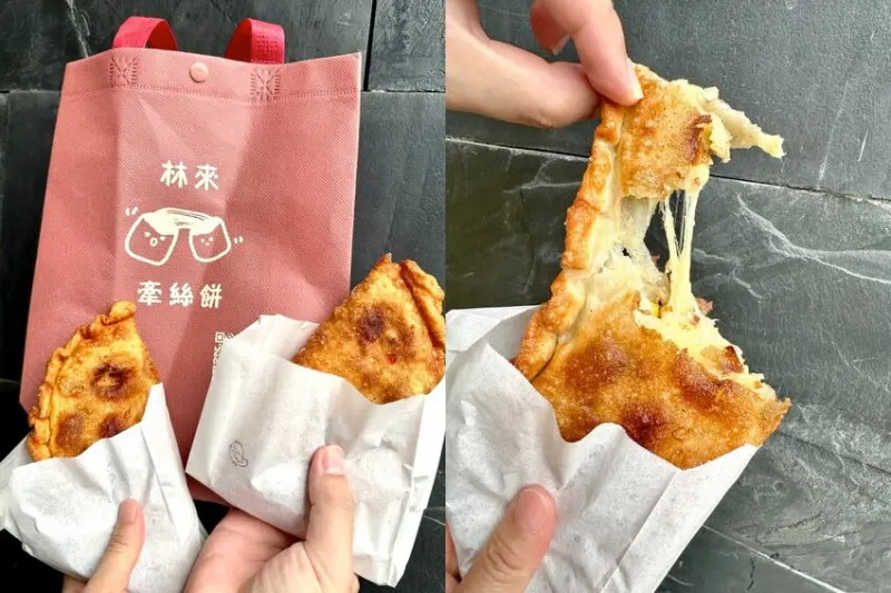 今天要跟大家報一個台南新店喔!上次想說好久沒有吃到五妃街的紅記早點,結果要線上訂餐才發現他們已經結束營業了…真的是太傷心了QQ。不過沒關係,原本的老闆改到公園路開了一間新的店,叫做林來牽絲餅,這間可是台南第一家牽絲餅專賣店喔,他們家賣的是自己手工現做的,裡面包了滿滿的牽絲起司,那爆漿的牽絲起司真的是超罪惡又超迷人,而且他們的餅皮吃起來有點像是炸蛋蔥油餅那種傳統炸餅皮的口感,搭配你挑選的口味餡料,真的是一個全新的享受!