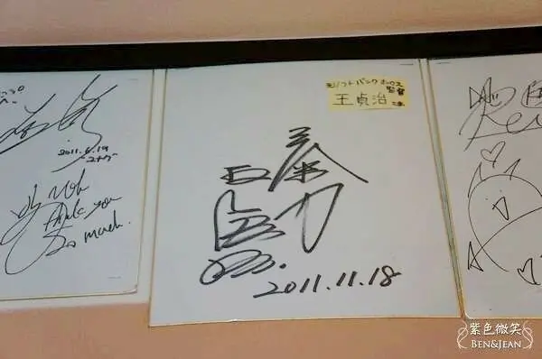 店裏好多名人的簽名,不過,只有認識這位王桑而已,哈哈,要是沒有那張小紙條也看不懂啊