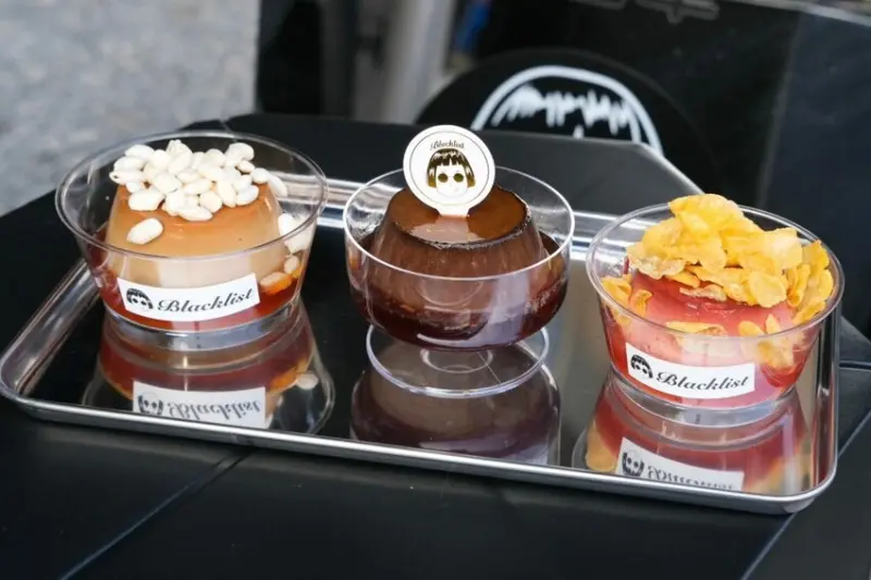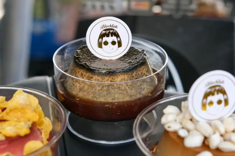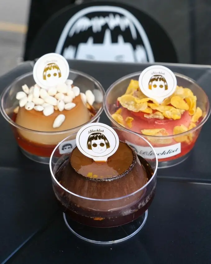 台中甜點控必收~每日限量完售的布丁屆精品,一中街新開幕的【𝖡𝗅𝖺𝖼𝗄𝗅𝗂𝗌𝗍 黑名單】,主打創意路線的手工布丁,可以吃到超多特別口味,原味、巧克力、鐵觀音、焙茶、黑芝麻、草莓等,擁有入口即化的奶油般口感,真的有在厲害,沒吃過這家別說你懂布丁!