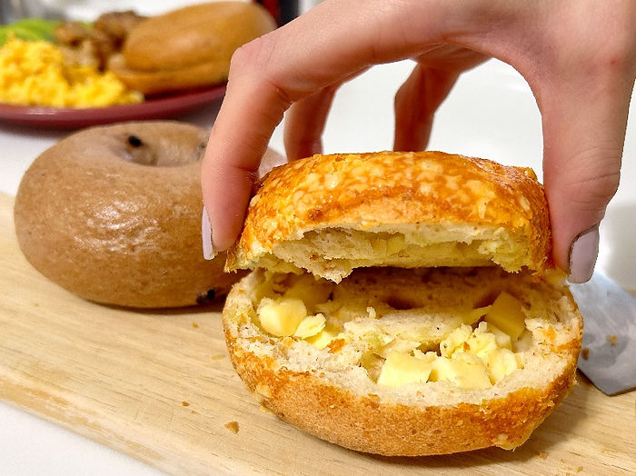 如果你是起司控,這款重乳酪起司貝果絕對不能錯過!是雪莉覺得鹹的貝果推薦口味首選。濃郁的起司香氣撲鼻,剛烤好時便能感受到滿滿的奶香誘惑。