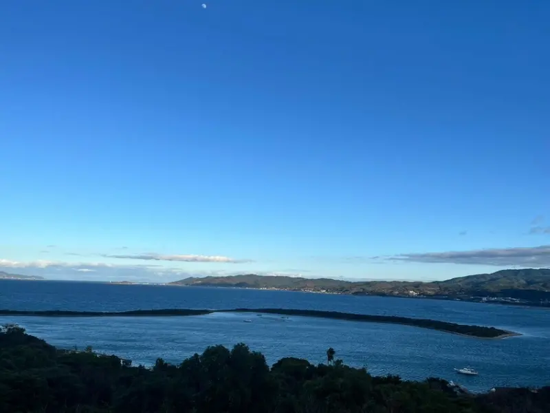 從富岡城公園往外看的景色是日本特別地形景觀海積地形之一沙嘴 圖片來源|許明潔拍攝