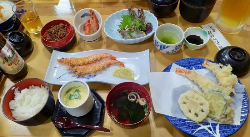 店家擁有自家養殖場,使用自家養殖的活花竹蝦來做各式料理,蝦肉彈性鮮甜,讓人一口接一口停不下來。店裡提供多樣化的套餐和定食選擇,能一次品嚐不同烹調風味的車海老。從新鮮生蝦、炸蝦、鹽烤蝦、蝦鬆,甚至連鹽也特別融入了蝦殼來增添風味,對於愛吃蝦的人來說,一餐吃下來絕對是相當滿足。※未滿18歲請勿飲酒,酒後不開車,安全有保障