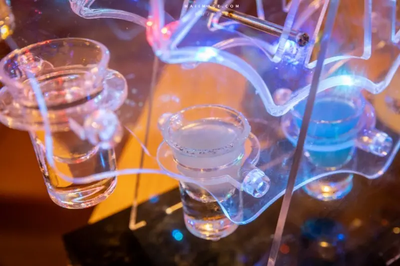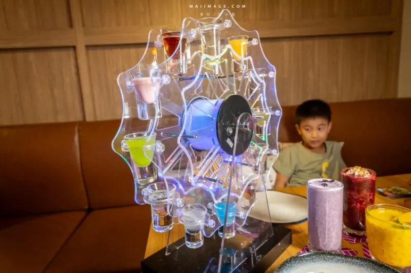 這個摩天輪厲害了,第一天晚上就開喝。裡面一共有12種不同種類的調酒、跟純飲,服務人員說這一輪喝完很少有人可以直走的回房間。