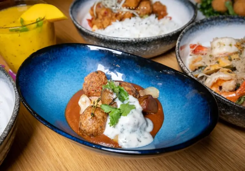 這個牛肉丸香料味很濃郁,底下的醬料有點像是紅咖哩相當有層次,上面再加上一層優格更添風味。