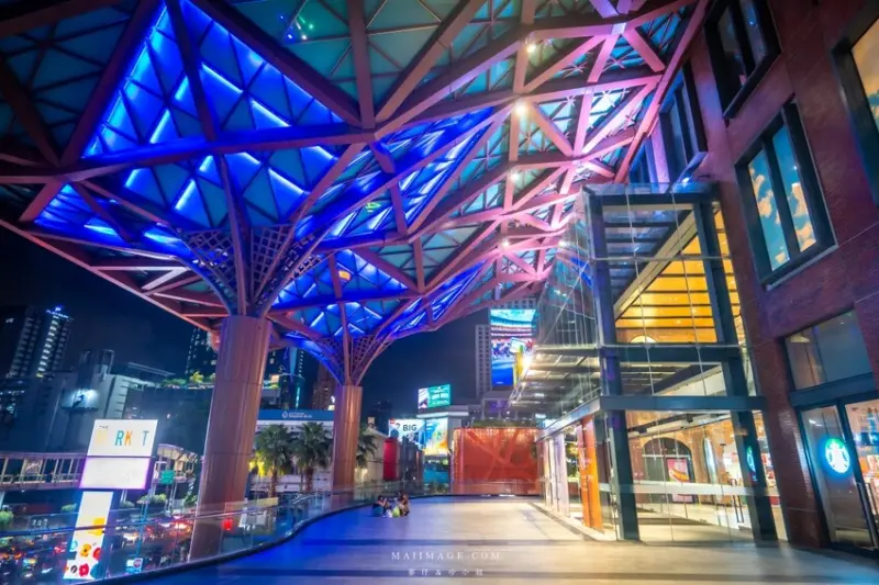吃飽喝足我們繼續出門散步逛街,享受一下曼谷的夜生活。從《Moxy Bangkok》的專用電梯可以直達道天橋區,這裡有時間限制所以如果超過時間回來也不用擔心從G樓的接待大廳一樣有電梯可以坐。