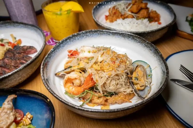 這次泰國五天四夜的小旅行,第一晚我們選擇了Moxy Bangkok的CRAFTED COCKTAILS吃晚餐,白天的CI大廳搖身一變成了夜店風的雞尾酒吧,整個風格大不同。餐點以創意的泰式料理為主,結合泰國在地食材及元素做出一系列的下酒料理跟主餐,《Moxy Bangkok》真的是風格多變的一間指標酒店,晚上想要小酌幾杯這裡也是完全沒有問題,然後喝完還能到露天戶外區的懶人沙發區放空,超Chill。