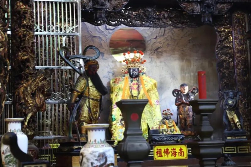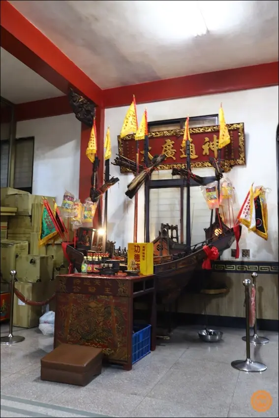 另外還有永祀王船與旗桿:宮內有一大一小的永祀王船,而且比較特別的是大船頭是朝內,小船則是朝外,也就是所謂的大船入小船出。