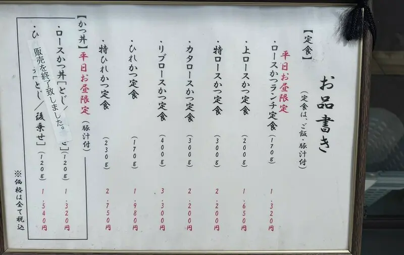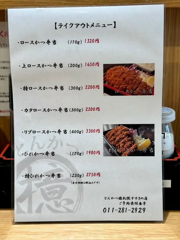 這裡的選項很單純,就是炸豬排,部位不同大小不同價格從1320到3300日幣,也有外帶的服務。