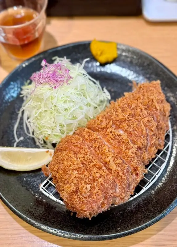 另外還有隨餐附上的黃芥末和一片檸檬,上桌時滿滿的炸豬排香氣,看到這個厚度,只要這個價格,便一半了解為何會有高分和人氣。