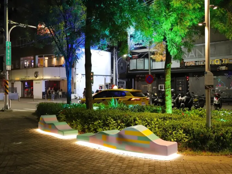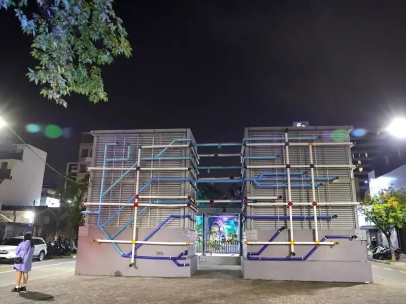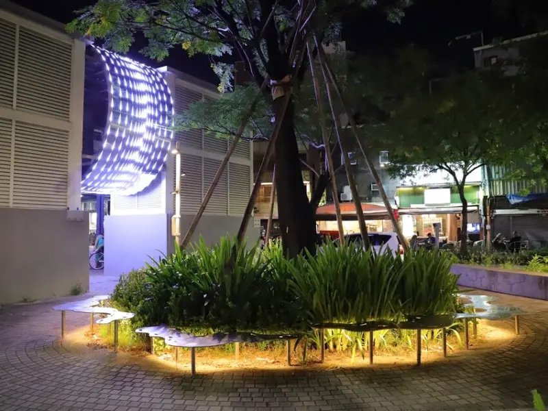 2024年的海安街道美術館作品白天是很有設計感的裝置藝術,晚上就會變身成超美的聲光藝術。這次還加入了新的媒體藝術和更多互動元素,讓大家在城市裡也能有充滿趣味的藝術體驗,更展現了台南濃濃的人情味。不同年代、住在同一個城市空間的人們,都能在海安街道美術館美好相遇喔。