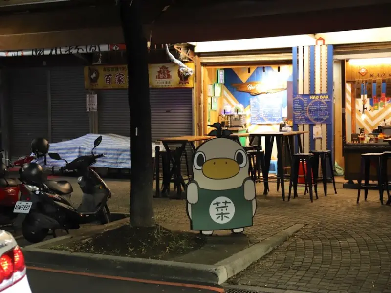 旁邊就是台南舊市場「沙卡里巴」。前陣子推出了吉祥物代表「菜奇鴨」,萌萌的可愛模樣加上諧音梗,很受歡迎喔。