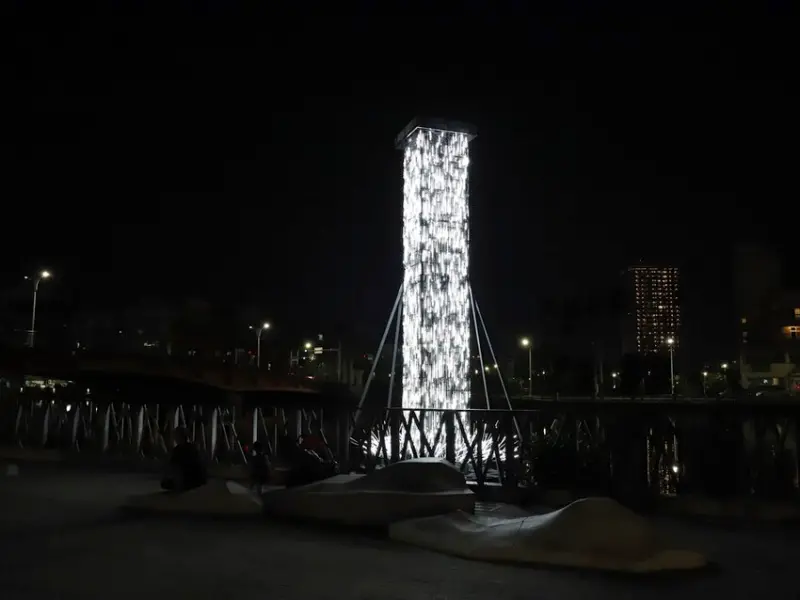 『時空-瀑布』 就位於 河樂廣場 旁的 廣8廣場 :台南環河街廣場(廣8廣場)新樣貌,夜步金色河岸,好浪漫~讓你從河樂廣場一路逛來台南運河河畔!/台南環河街廣8水岸廊帶