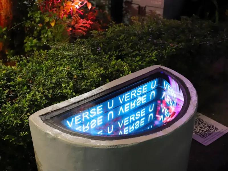 連接地面和地下的水井,以前是主要的飲用水來源,而且充滿神秘色彩。老一輩的府城人相傳赤崁樓的古井有秘密通道通往安平;而五條港區南勢港海安宮前的半月井,信徒更會在端午節取那裡的「午時水」來避邪祈福。藝術家把半月井轉化為街道傢俱,好像古代和現代共存,也是連接未知、現實和虛擬之間的入口。掃描QR code,觀眾可以創建虛擬角色,穿梭到Verse U世界,和別人連結互動。