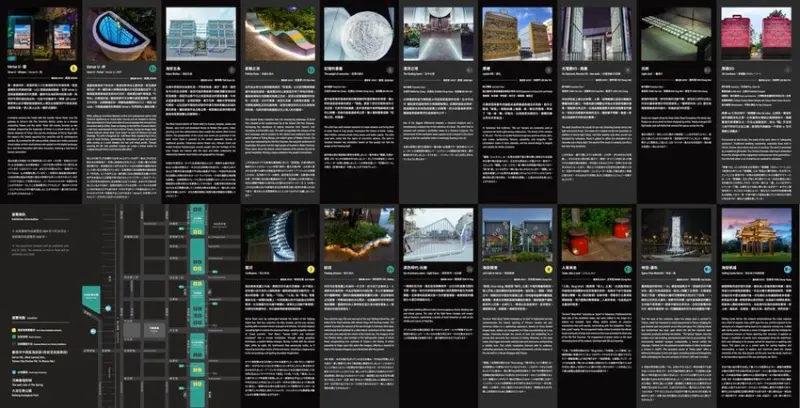 以前的台江內海是陸地和水路交織的五條港,現在已經變成車水馬龍的海安路,很多歷史痕跡都藏在這個城市裡面。作品用水波紋路和不同時期的天際線剪影組合的圖案,加上金屬隔柵,產生一種視覺上的錯覺效果。當行人和車輛經過的時候,這些圖案會若隱若現,在這條邁向未來的路上,展現海安路豐富的歷史和無限的未來。