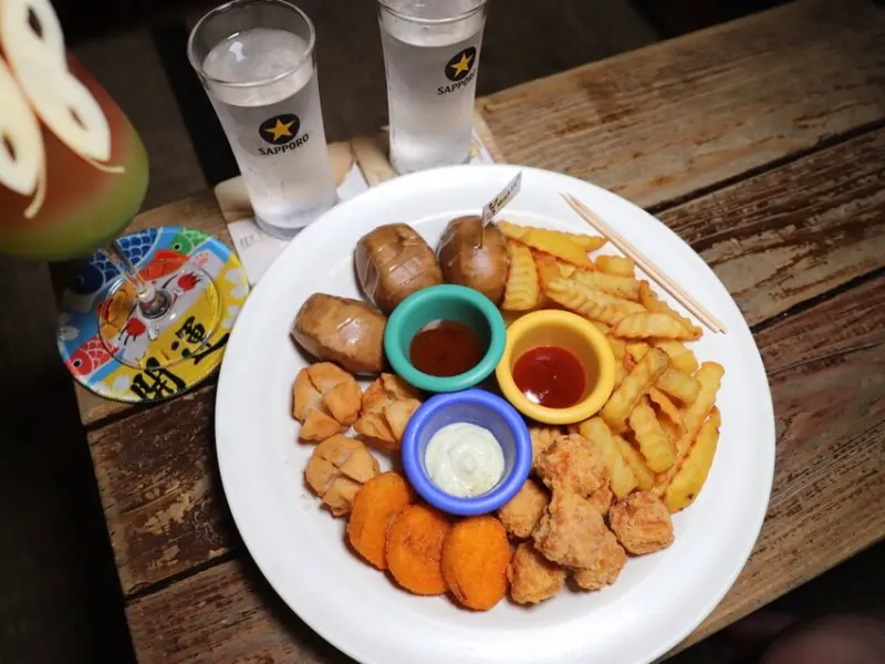 炸物拼盤,熱炸上桌,一次就能享用到美味炸薯、雞米花、雞塊、洋蔥圈。