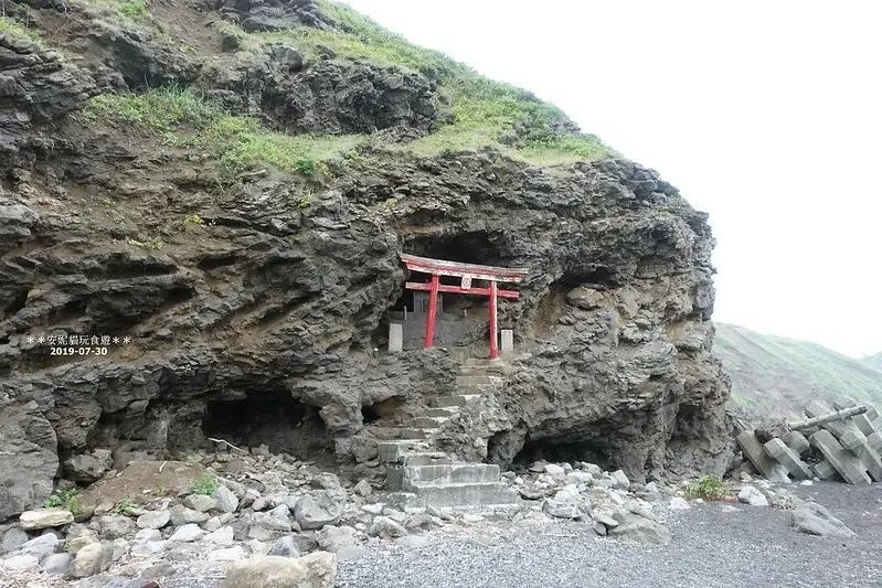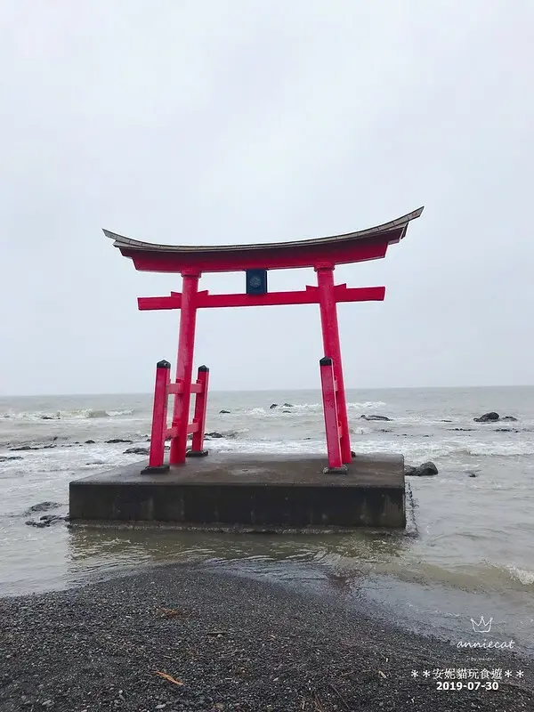 可以見到鳥居下的基座