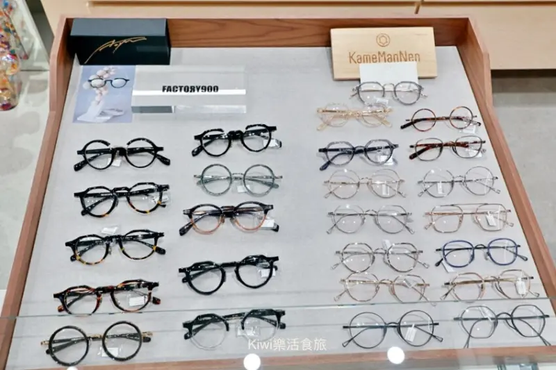 平常Kiwi比較少看粗框,不過Kame ManNen運用簡單的線條就設計出專屬品牌的獨特性,百年來只推出純金屬的鏡框,堅持特色萬年龜款式,眼鏡的微小零件都是自家生產,很有古典味。
