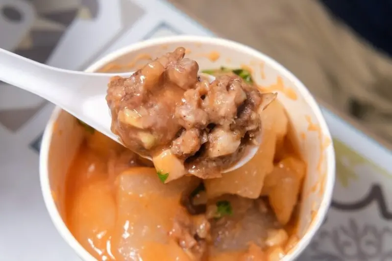 ▼吃小吃一定要配碗湯換換口味~它們家的笑傲蘿蔔湯是清爽路線,湯控們一定會愛,熬煮入味的白蘿蔔口感多汁,湯頭鮮甜不死鹹,配上重口味的食物很解膩!