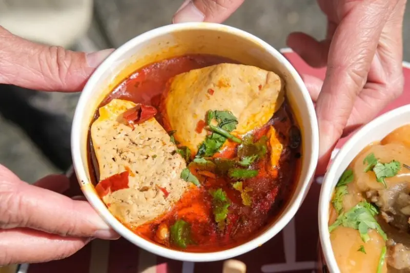 ▼推薦大家必點這道麻辣臭豆腐!光聞到味道就認真有在臭,湯底香麻濃郁帶有中藥香氣,臭豆腐的孔洞吸附濃郁湯汁,咬下瞬間爆汁實在太過癮啦~