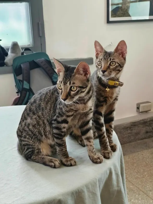 這二隻虎斑貓是高美燈塔園區豢養的寵物,那天相當乖巧地端坐在桌子上,大家紛紛舉起手機拍照,它倆也沒驚惶逃開,倒是頗有明星風範地坐著讓大家拍照