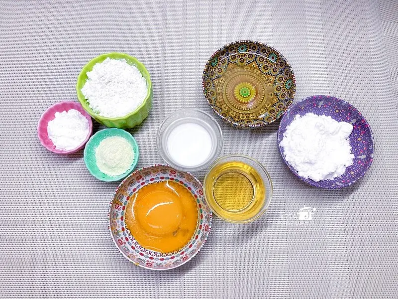 蛋黃糊:蛋黃2顆,沙拉油30g,牛奶30g,麵低筋麵粉37g,玉米粉3g,奶粉3g