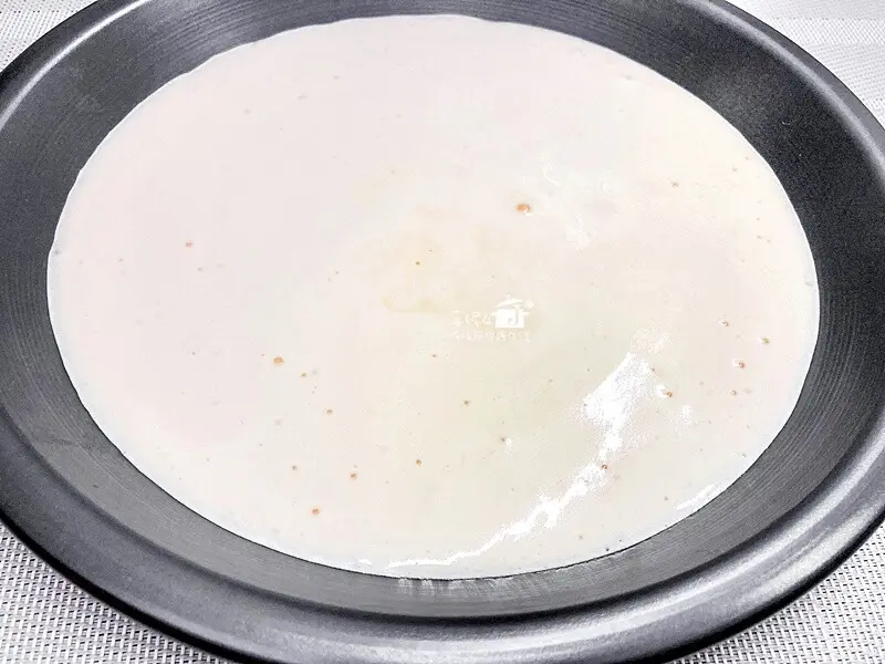 6.調好的麵糊倒入派盤,用竹籤或筷子在麵糊裡來回畫圈以消除氣泡