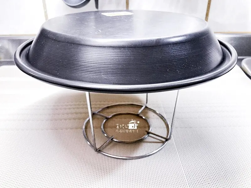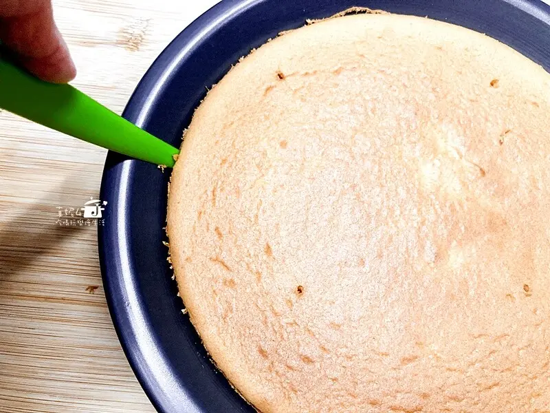 8.烤好的蛋糕連同派盤倒扣放到完全冷卻後再脫模