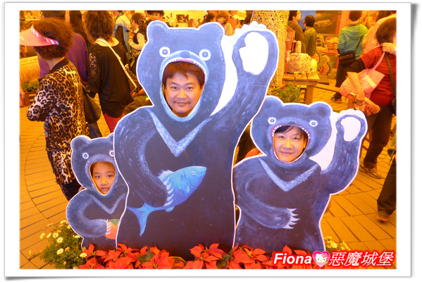 入口處有三隻和樂融融的熊家族,我們請其他遊客幫忙拍一張全家福,表情還不錯哩!!呵呵!!