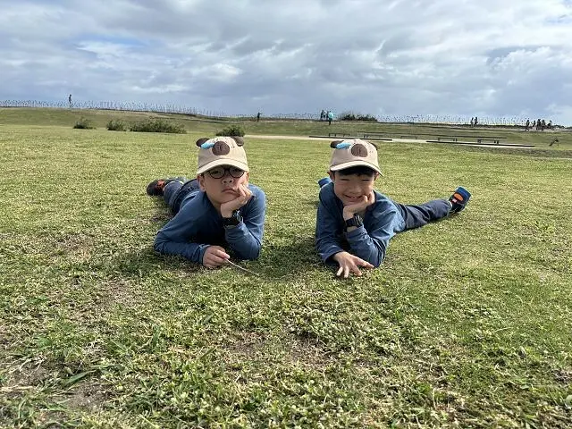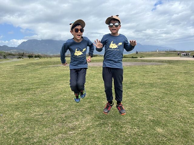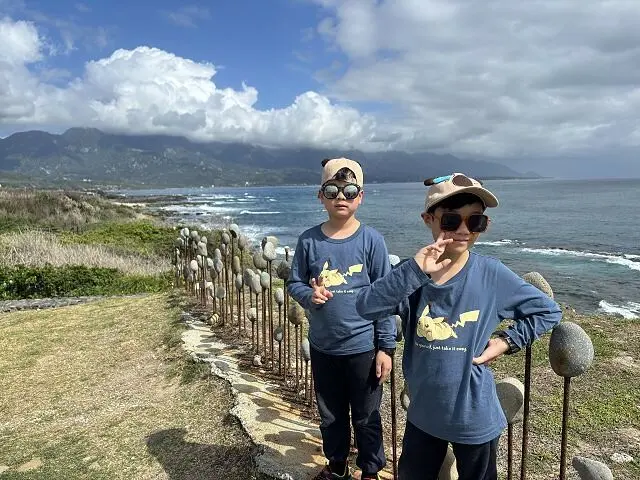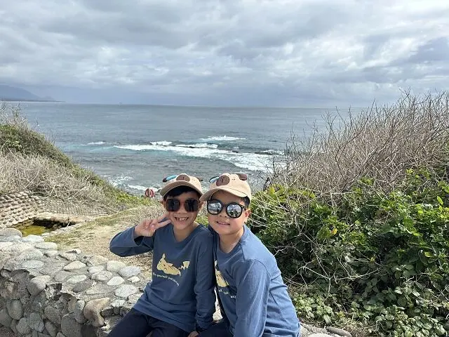 初春的季節時分,台東已經暖如夏了,還好佐佑兩兄弟有準備太陽眼鏡,才可以輕鬆拍照。