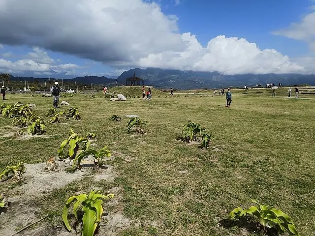 台東有一種迷人的風采,處處都顯得悠閒而自在,來到「加路蘭遊憩區」一大片草坪呈現的綠意氣息,搭配藍天白雲和遠山景色,讓人感到十分心曠神怡。