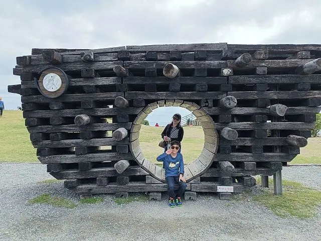 我們一直以為是兩條魚,後來才知道這個用漂流木呈現的裝置藝術,是兩隻可愛的河豚呢!
