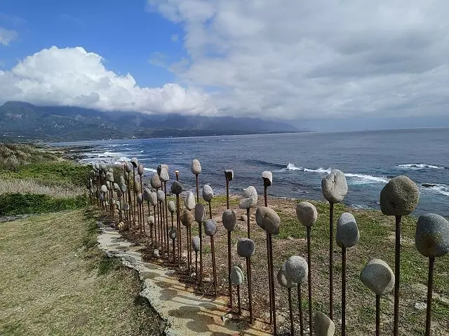 這個以石子和鋼鐵為元素的作品,沿著台東海岸線呈現真的很美。