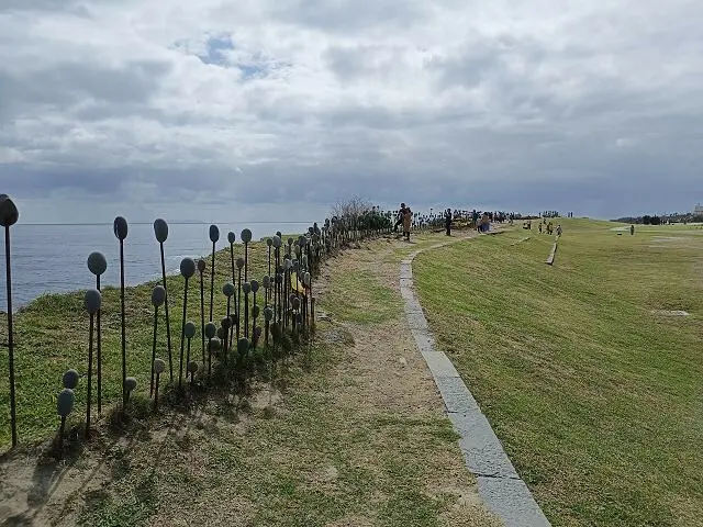 「加路蘭遊憩區」是台東海岸線旅行的招牌景點,園區有寬廣的草坪可以感受悠閒的綠意,草坪上還有許多裝置藝術可以拍照,觀景台上可以欣賞海岸美景,是一處令人放鬆心情的好地方。