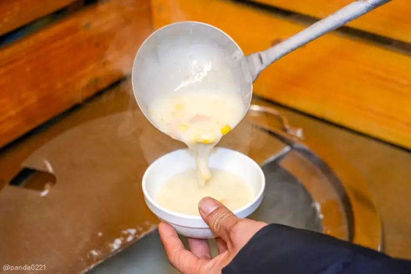自助吧有提供檸檬水、玉米濃湯、餐具和調味料,需自行取用!