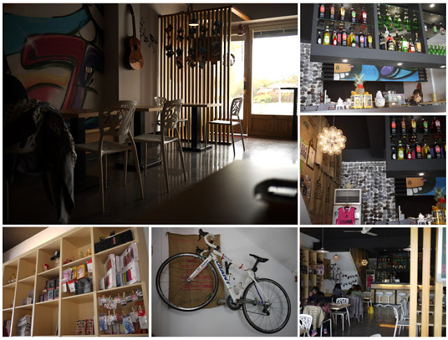 雖然我們去的時候是中午,但環境上的佈置蠻有氣氛的,最酷的是,竟然有一台腳踏車被放在牆壁上耶!咖啡廳放這台也太妙了吧?