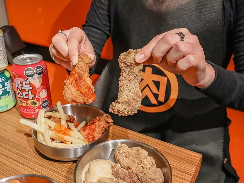 小朋友最愛的韓式炸雞有兩種口味,有金黃色的炸棒棒腿跟炸排骨,搭配他們特製的韓國甜辣醬,吃起來超夠味的,沾上特製的塔塔醬,又會有更清爽的感覺,當然還有小朋友最愛的薯條啦。
