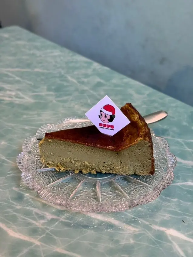 巴斯克屬於濃郁型的乳酪口感~抹茶味也滿香,但切下去會有一點碎碎的