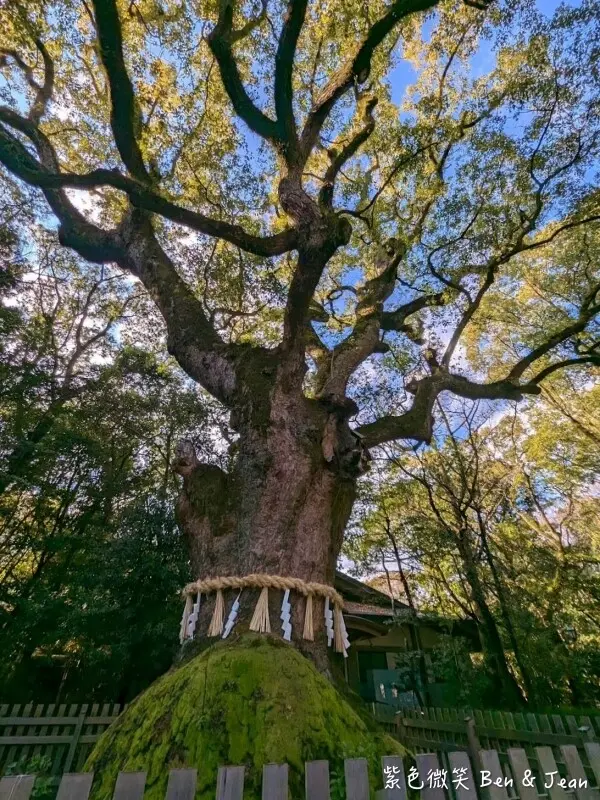 參道中手水舍旁邊被木柵欄包圍的大樟樹,這棵可是超過1000年的神樹了。