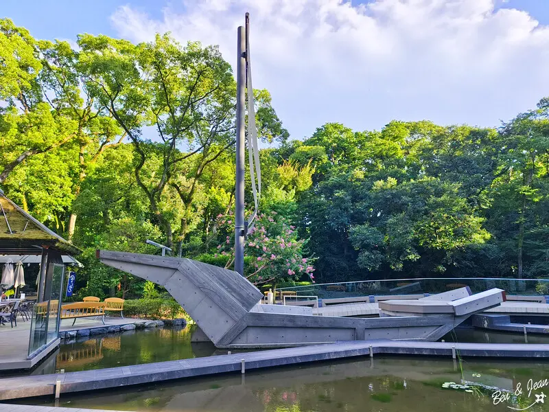 草薙廣場裡有南神池,可從二十五丁橋走到船型露台拍照。