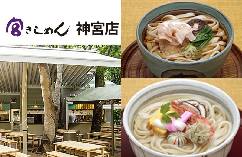 提供名古屋特色きしめん(扁平烏龍麵),可在戶外座位邊用餐邊欣賞神宮庭園。