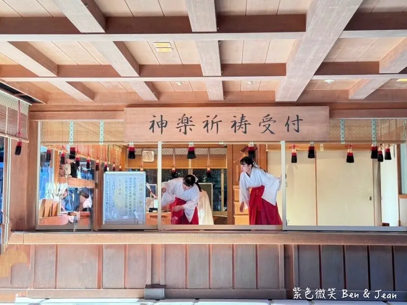 若想求 御神籤,需先在籤筒中搖出籤號,接著前往授與所向巫女報上號碼並支付 200日圓,即可獲得籤詩。