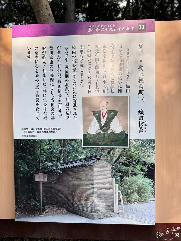 ▼所謂的「塀」,就是「土牆」。當年織田信長在「桶狹間之戰」前,曾前來參拜。並在大獲全勝後,修築了「信長塀」