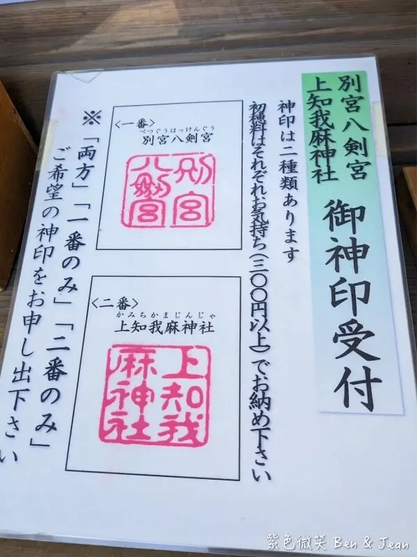 上知我麻神社 & 別宮八劍宮 御朱印資訊