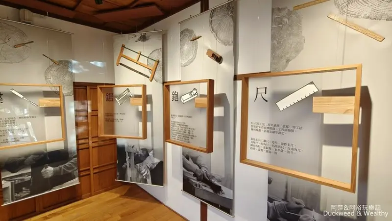 館內空間不大,但內容豐富,各種木製品包括門窗地板,